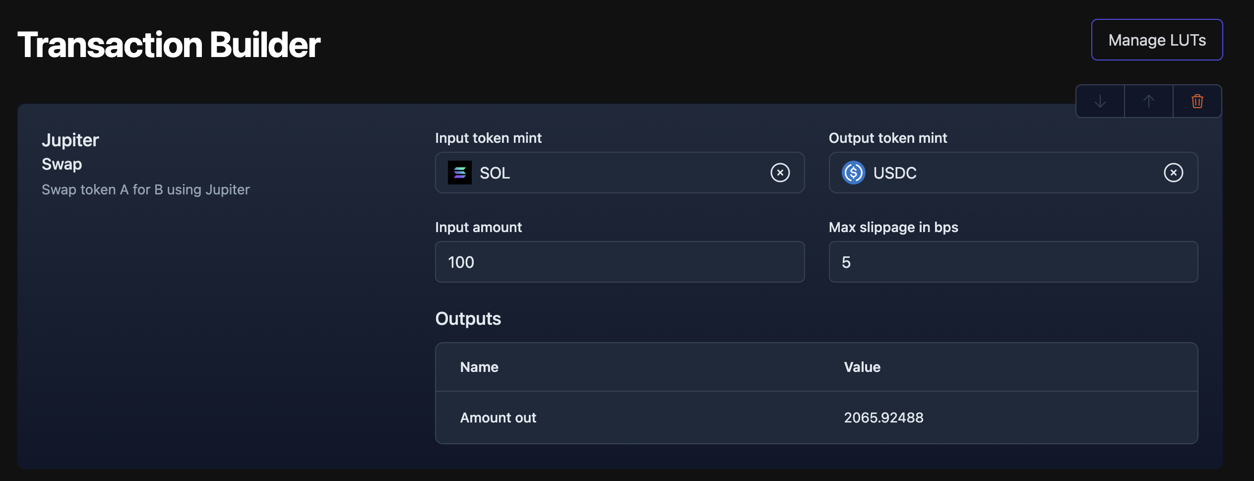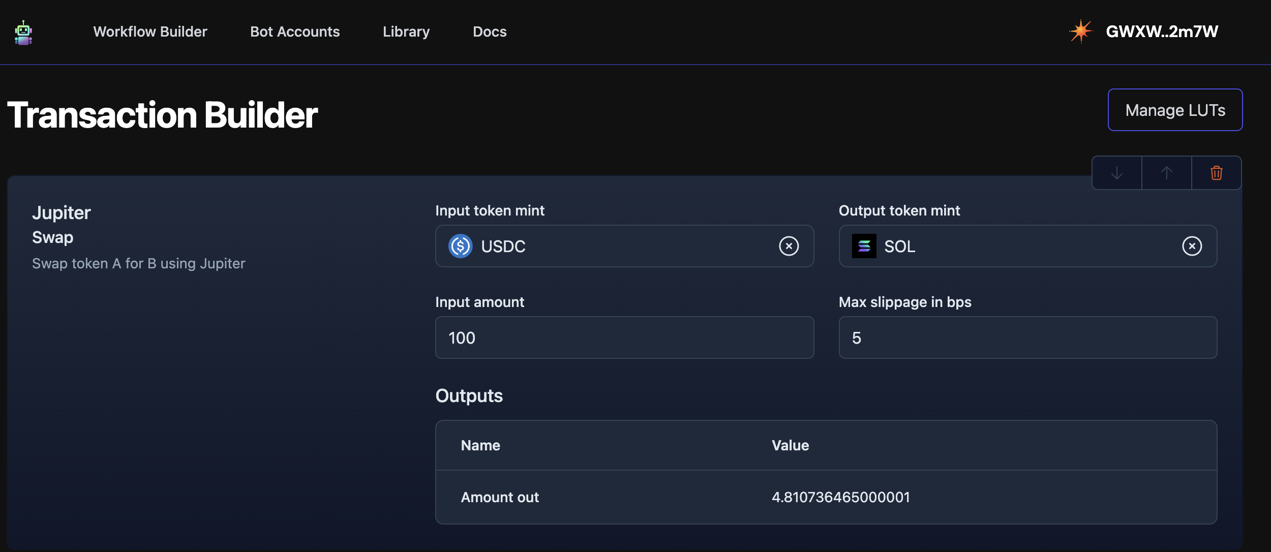 Create the workflow. It's just a simple Jupiter swap, here's a screenshot of how it could look:
